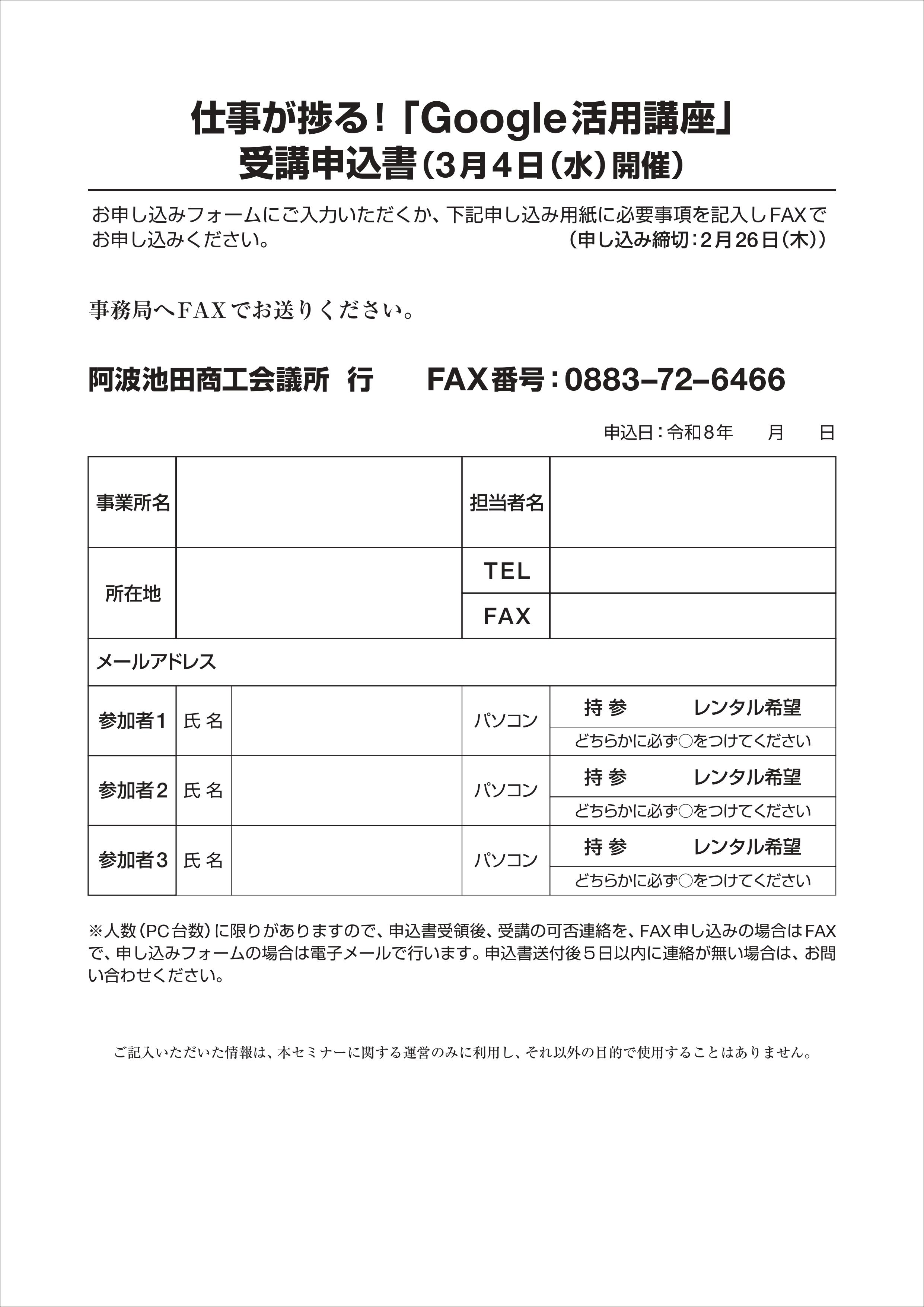 仕事が捗る!「Google活用講座」チラシ(裏)